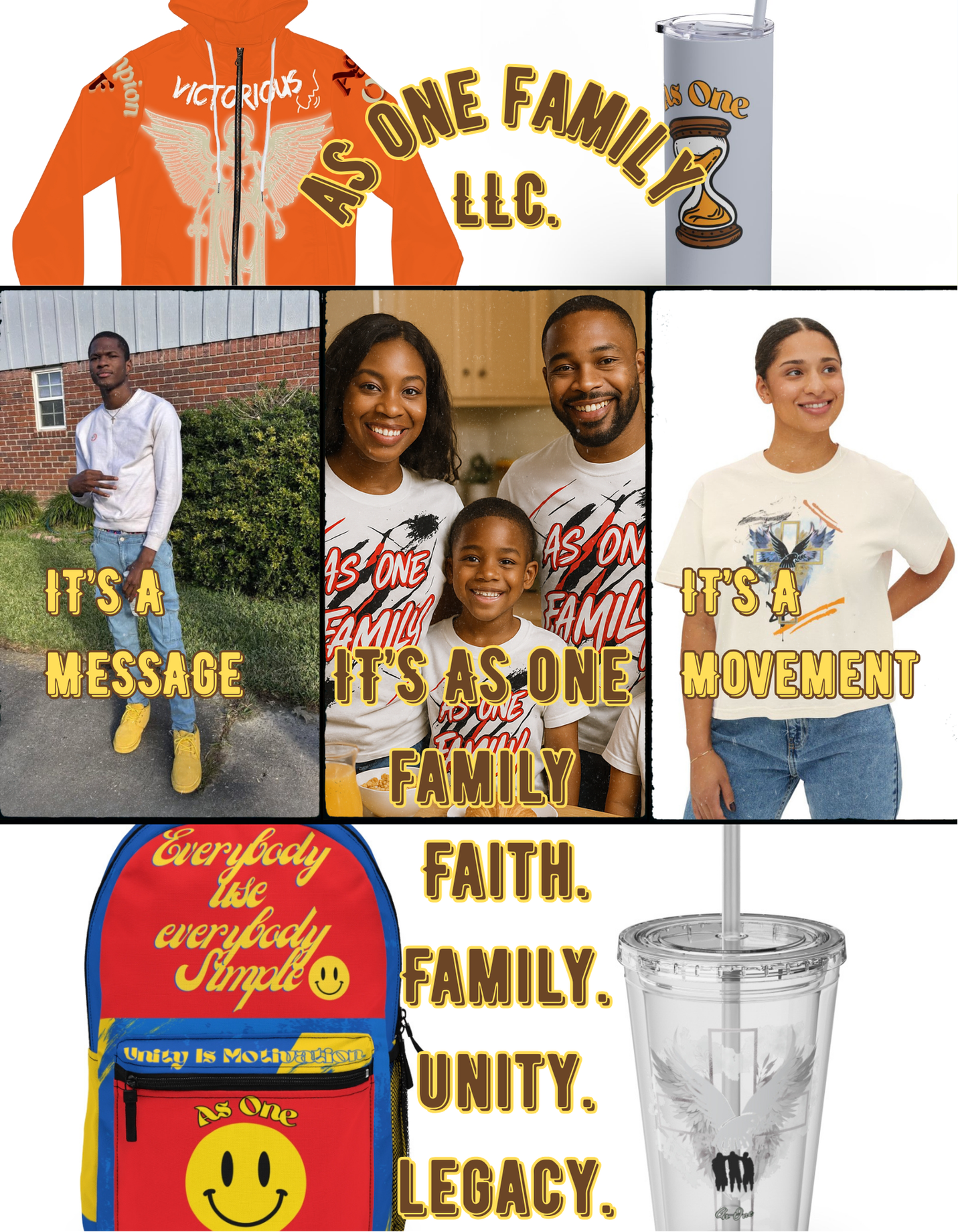 As One Family LLC is dedicated to empowering individuals who are passionate about growing stronger families, churches, organizations, and communities. Through bold, faith-based apparel and purpose-driven messaging, we promote love, unity, and emotional healing at every level of life.